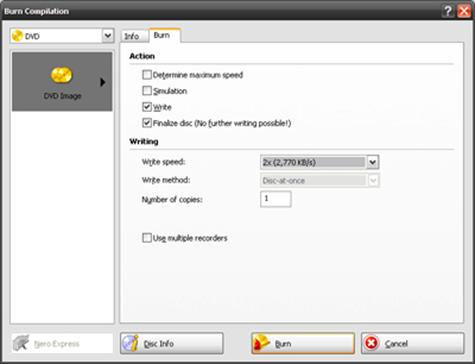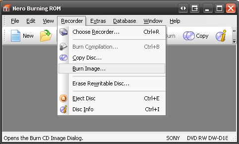 Recorder->Burn Image.