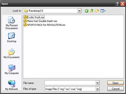Select the game that you have dumped with rawdump and click open.
